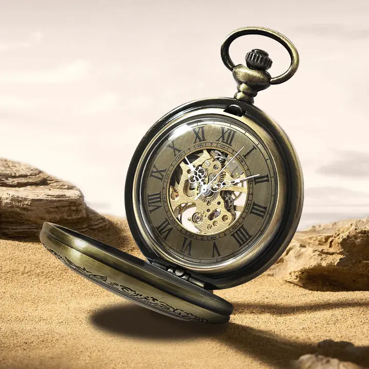 Bronze Hollow Gear Movement Quartz Pocket Watch Pendant