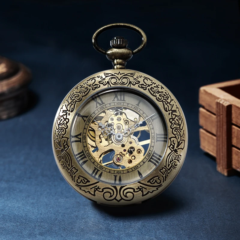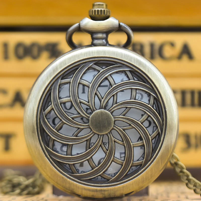 Carved Steampunk Quartz Pocket Watch Bronze Vintage Chain Pendant