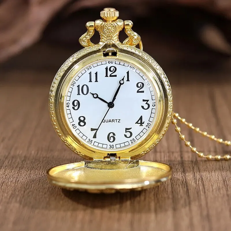 Gold Flower Quartz Pocket Double-sided Printing Design Pendant Watch