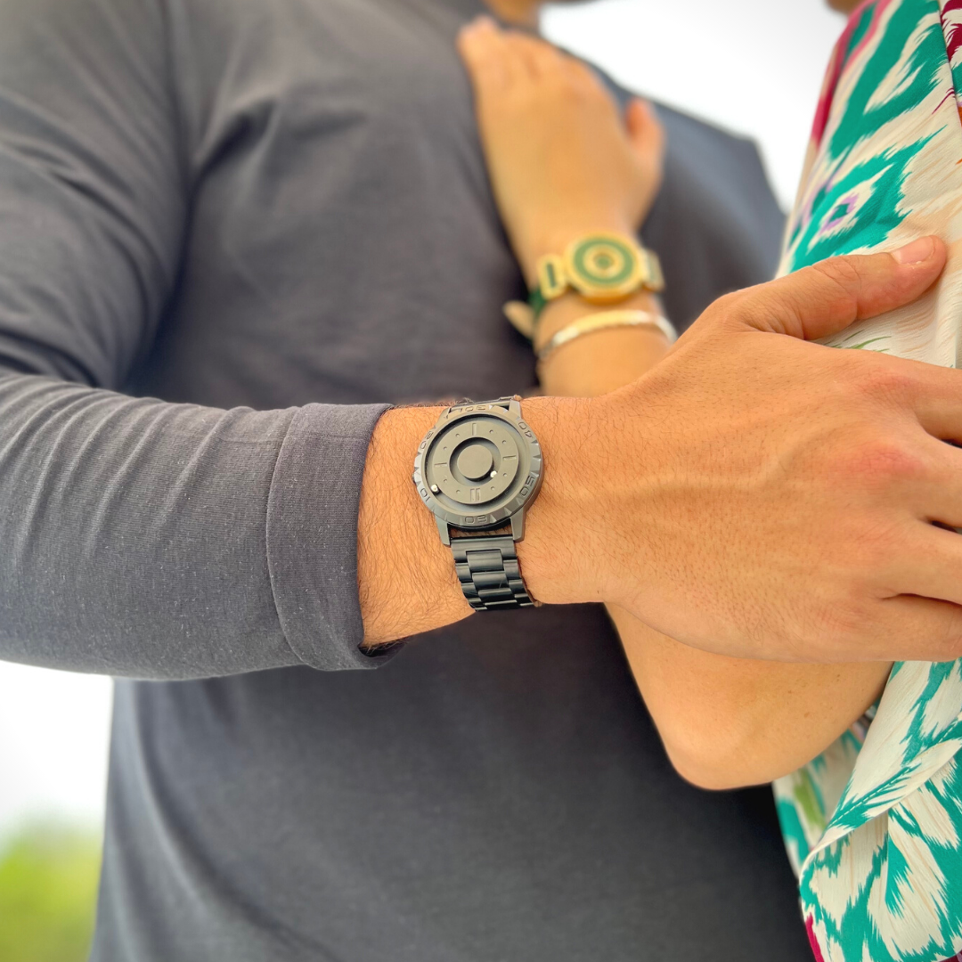 Discover unique watches to stun the world and stop people in their tracks. Inspired by the planet Jupiter, this watch has a tasteful minimalist design. Two magic spheres float in orbit to tell you the time. The inner sphere stands for the hour hand, and the outer sphere for the minute hand.