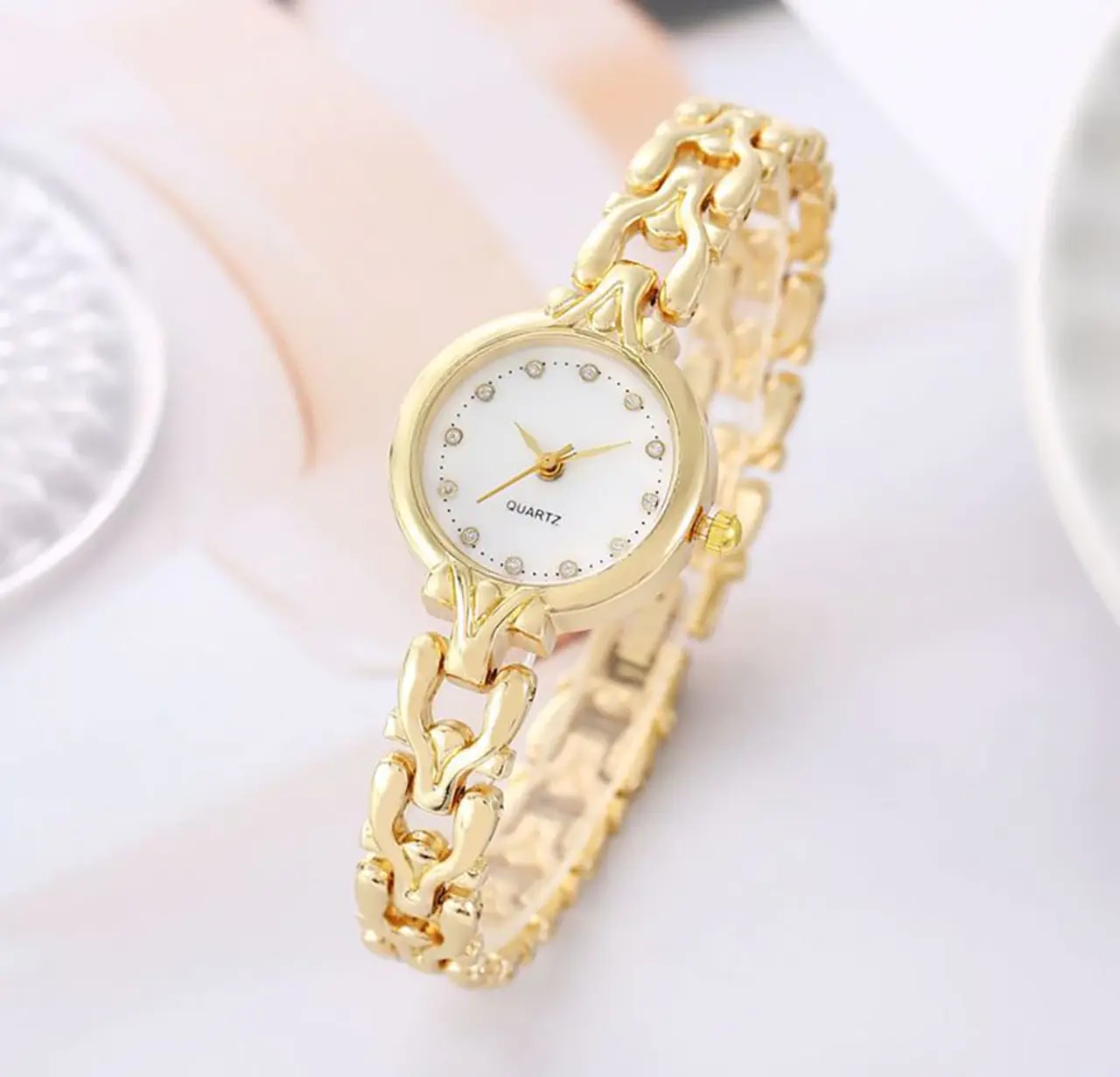Simple Fashionable: Simple small round face womens gold watch, cute and fashionable, perfectly fits your slim wrist, stylish and elegant design, make your life full of brilliance.