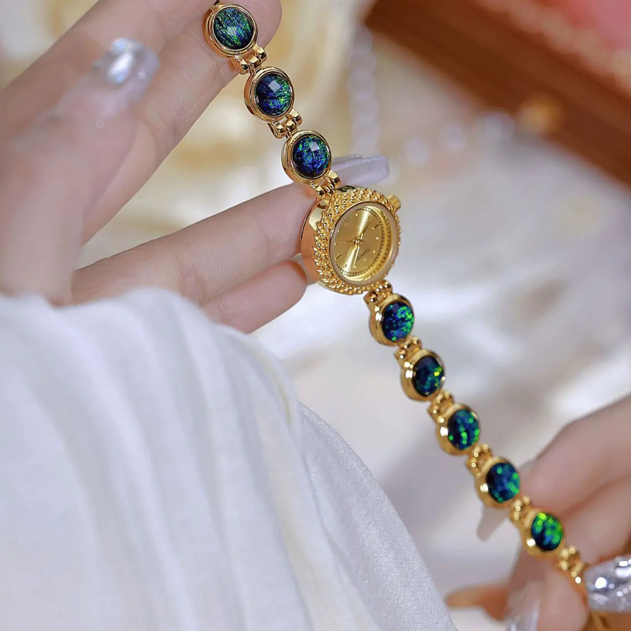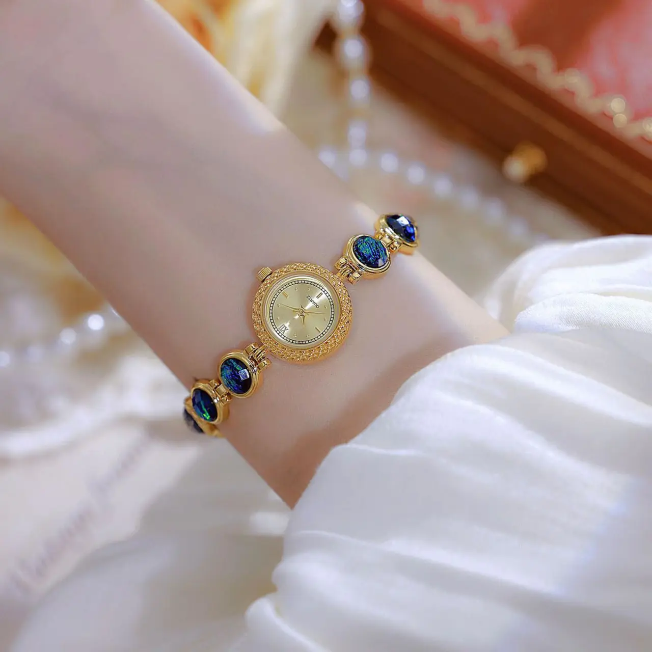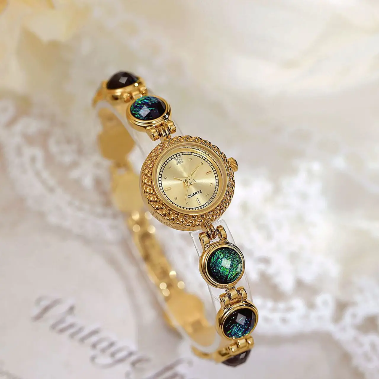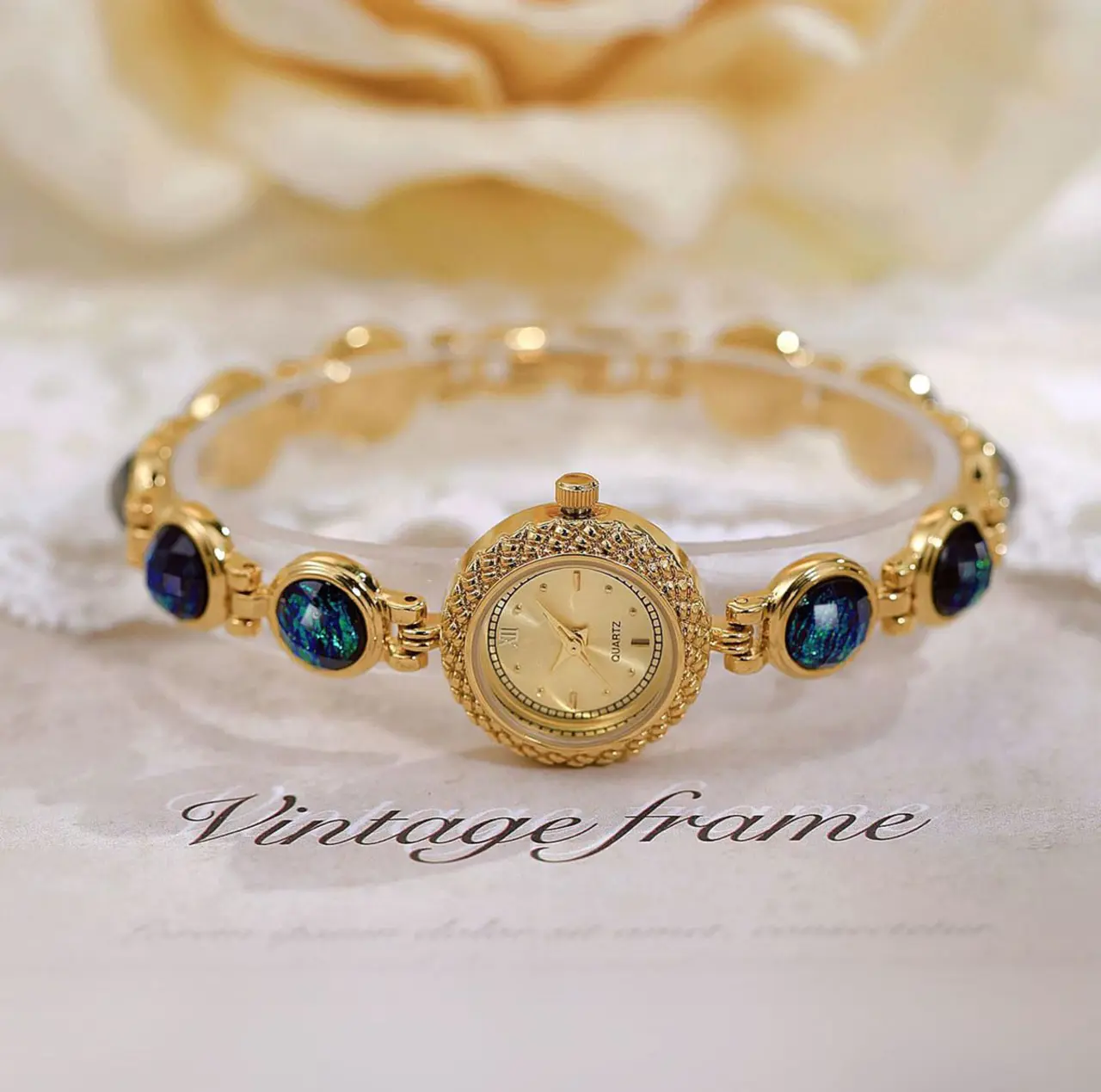 Womens vintage gold watch:Ingenious bracelet watch design, wear like a jewelry piece . A crystal jeweled bracelet strap with jewels that don't come off easily and look great.