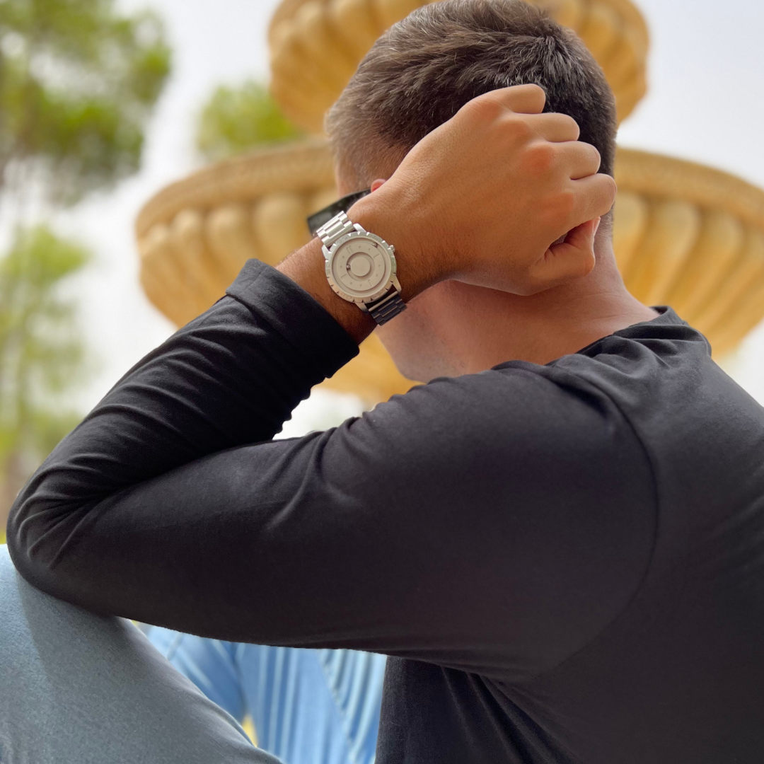 Discover unique watches to stun the world and stop people in their tracks. Inspired by the celestial body comet, this watch has a tasteful minimalist design. Two magic spheres float in orbit to tell you the time. The inner sphere stands for the hour hand, and the outer sphere for the minute hand.