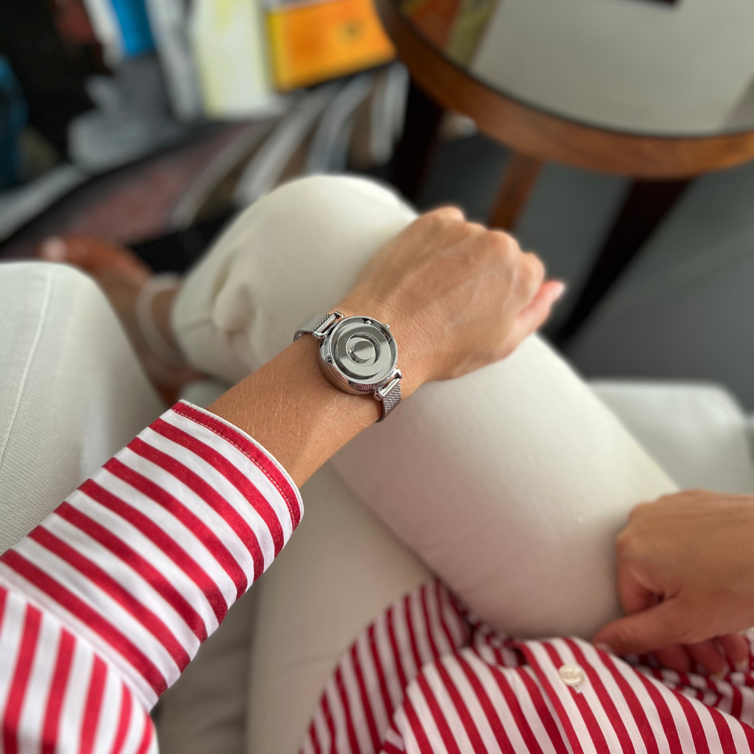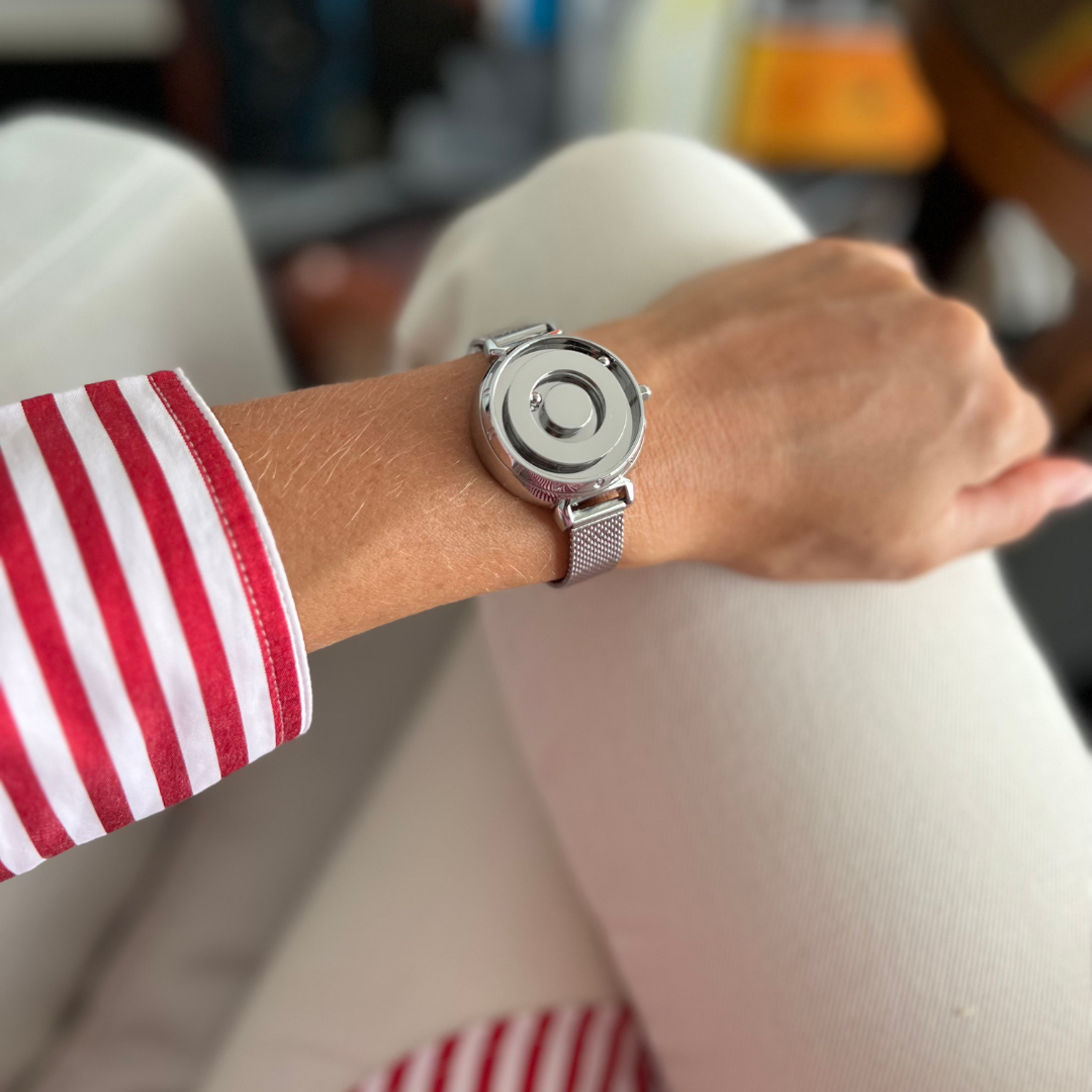 Discover unique watches to stun the world and stop people in their tracks. Inspired by the planet Venus, this watch has a tasteful minimalist and feminine design. Two magic spheres float in orbit to tell you the time. The inner sphere stands for the hour hand, and the outer sphere for the minute hand.